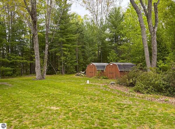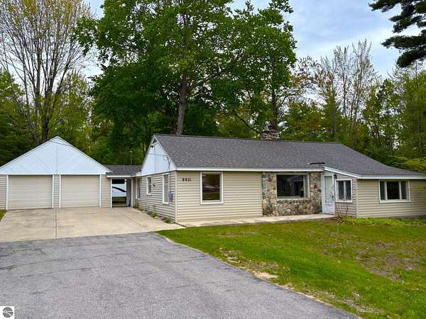 Est $2,561/moWhat an Investment and Adorable Home! Over 425 feet of Prime Road Frontage on US HIGHWAY 31. This property is currently zoned residential but is designated Commercial in the Futures Master Plan of the Township and can be changed any time per Township. Very close to Interlochen Corners where everything is developing at a rapid rate. Can split of land if desired. Home has character galore and very nice, wooded setting in the back. Featuring a two-car garage, two large sheds and beautiful field stone fireplace. Close to Interlochen Village, Interlochen Center for the Arts and Traverse City.