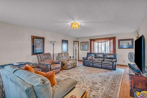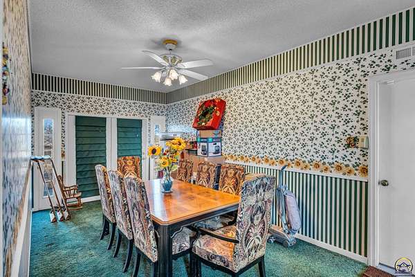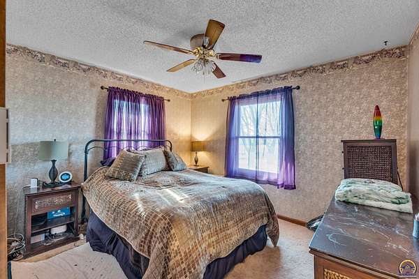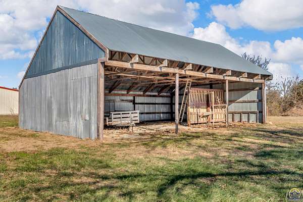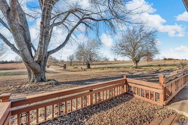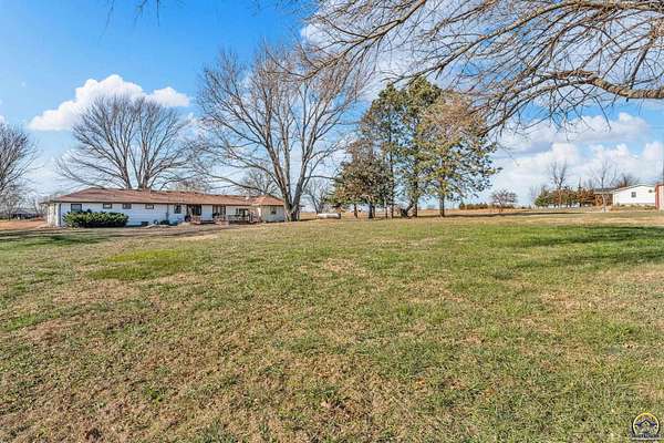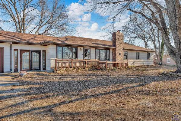 Welcome home to this spacious southeast Topeka ranch nestled on 1.9 acres of peaceful, paved countryside-just 8 minutes south of Lake Shawnee! A long circle driveway leads you to the front of the home, offering both convenience and charm. Step inside to a large, open living and dining area with stunning hardwood floors and a cozy wood-burning fireplace with a stove insert as the centerpiece. The dining room flows seamlessly into the oversized kitchen, complete with beautiful custom wood cabinets and brand-new stainless steel appliances installed in 2023. Down the hallway, you'll find three comfortable bedrooms and two full bathrooms. The main bathroom has been thoughtfully remodeled with a walk-in shower and a built-in double vanity for extra storage and style. Just off the living room is a versatile, fully finished 200 sq ft breezeway connecting the house to the garage. It's the perfect spot for hosting gatherings, setting up a game room, or enjoying a relaxing hobby space. The finished basement adds even more room to spread out, featuring a bar, a large second living area, and a bonus bedroom-great for guests or a home office. Step out back onto the deck and take in beautiful sunrises with your morning coffee. There's also a convenient pole barn on the property, perfect for storing campers, boats, trailers, and more.