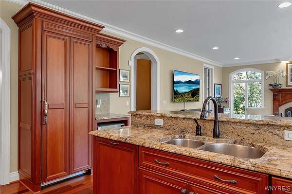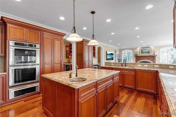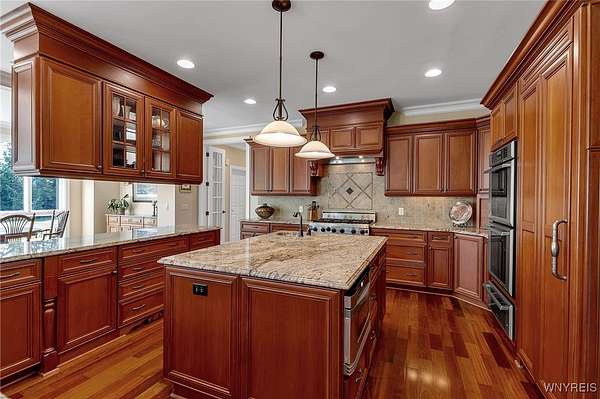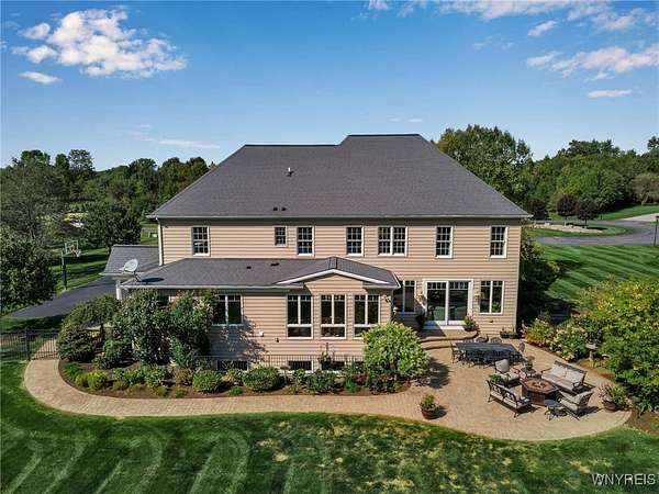 The Key To Your Luxury Dream Home is here at this One of a Kind Custom Built Cipollone Estate. This impressive estate is perfectly positioned on a spacious 3.07 acre private lot with manicured lawns , landscaping and mature trees. From the moment you arrive the curb appeal and park like setting is undeniable,an elegant luxury home set back on a long driveway, offering both privacy & prestige.Stunning curb appeal features;Stone front & vinyl siding, prof landscaping, covered porch w/columns, paver front walkway, 3 car side load garage w/covered side entry way & blacktop driveway. Backyard oasis, ideal for adding a pool, outdoor kitchen, sport court or simply enjoying the views.Upon entering you'll notice the grand 9 ft ceilings, 2story foyer w/tile flooring & chandelier, custom staircase, wide plank brazilian cherry floors & anderson windows. Elegant front formal dining rm is the perfect place to entertain with a pass-through dry bar leading to the kitchen & oversized walk-in pantry.Cozy&Comfortable front living rm is the perfect place to relax. Heart of the home is in the Open Concept Eat in Dream Kitchen that connects to the sunroom&elegant family rm surrounded by walls of windows.Chef's Dream Kitchen features endless granite countertops, tile backsplash, high end SS appliances, custom cabinetry , oversized island & plenty of seating.Mudroom off the garage has tile flooring, coat closet &built in cubbies w/bench and leads to the 1'st Flr laundry rm and Den/Office. 2 offices accommodate anyone who works from home.Main office located off the mudroom towards the back of the home & second office is attach to primary suite on 2'nd Flr. 2'nd Flr Primary Suite has gleaming hardwood floors, custom ceilings , gas fireplace & offers a Spa bath w/whirlpool tub, tile shower & dual walk-in closets. 4 spacious bedrooms w/hardwood floors & walk-in closets share two Jack&Jill baths to complete the 2'nd Flr. Finished lower level w/1800+ sq ft, daylight windows, luxury vinyl flooring, 1/2 bath , fitness rm , living rm w/ gas fireplace & recreation rm.This home has been meticulously maintained & measured for approximate sqft:AGrade sqft 4679.Total 6479 sqft w/basement.A MUST SEE!