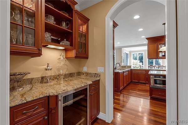 - Dishwasher, Disposal, Double Oven, Gas Oven, Gas Range, Gas Water Heater, Microwave, Refrigerator, Wine Cooler