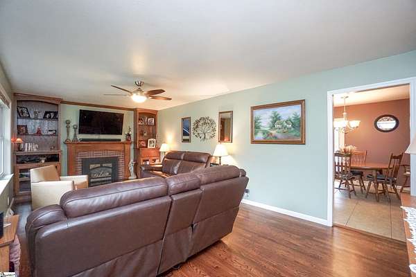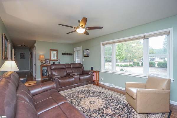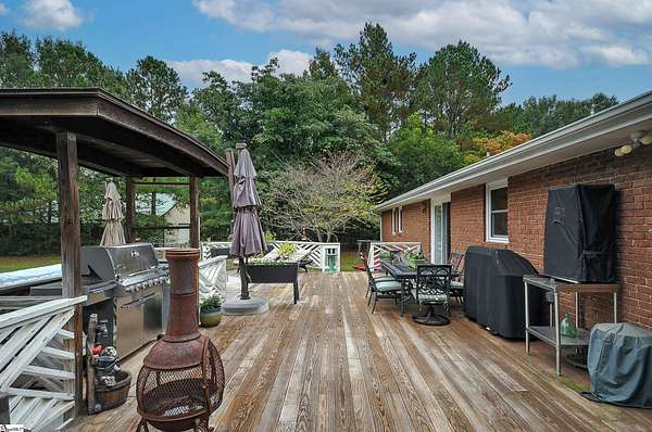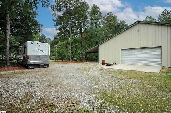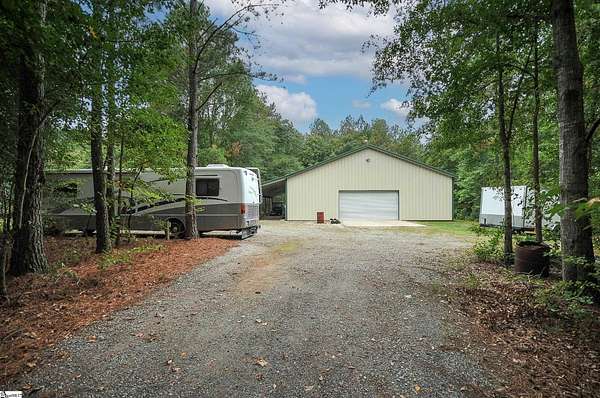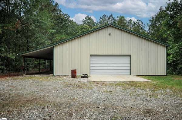 Welcome to 893 Trinity Church Road! This brick ranch is just under 2000 sq ft and the 3000 sq ft Workshop are on a generous 6-acre homesite nestled in the heart of Laurens county, just minutes from I-385 and Simpsonville! No HOA! This home offers endless possibilities for outdoor activities and hobbies. This stunning brick ranch invites you in through a welcoming front porch and offers exceptional features. Step inside to enjoy the spacious living room featuring a cozy gas fireplace, custom built-ins, large windows, and an elegant textured ceiling, creating a warm and inviting atmosphere. You'll then find the open and airy kitchen and breakfast area, perfect for morning gatherings. You will find custom cabinets accented with under cabinets lighting, granite countertops and tiled backsplash. The home comes with top-of-the-line appliances you see. Advantium Covection/Microwave, Cafe GE 6 burner gas freestanding stove, stainless GE profile dishwasher, stainless Cafe GE frig, a second frig, an extra freezer, and Speed Queen washer gas/dryer. The great room is perfect as an extension for entertaining. The primary bedroom is a true sanctuary with two closets and an ensuite bathroom with a new tiled shower with a linear drain. You'll also find two additional bedrooms and another full bathroom, ensuring plenty of space for family and guests. The large deck is ideal for entertaining or simply enjoying the serene surroundings. Fruit trees, fenced back yard, exterior gas grill, 7x12 swim spa w/Cool Zone. You can enter the detached 2-car garage with skylights from the side door. You have to see this Workshop to believe it !!! No expense was spared! This Workshop is 50ft x 60ft (12' 4 1/2 side walls with scissor trusses w/17'peak) 14x60 lean-to with 9ft clearance on the low side. Front and back doors 36x80 that can be easily accessed for emergency egress. Imagine 3000 sq ft of climate-controlled workspace.! Insulation R-19 w/ 1 1/2 air gap, 5 1/2 slab, 9x18 insulated commercial roll-up door, lift master door opener, 9 ft clearance. Two 2 ton mini splits positioned higher than usual to fully use the space below. LED lighting, 220 outlets in several locations, multiple 20 amp outlets with only four on each circuit. The Metal roof has felt on the back of sheets for soundproofing and preventing condensation. R-30 insulation is used in the ceiling to help with climate control. The Workshop has a separate entrance with a crushed concrete drive. 50 amp service and water feeds RV hook-up!