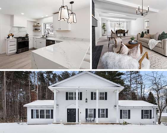 Est $3,322/moWe are excited to present this lovely property. Tucked away on a peaceful 3-acre lot in Caledonia, this beautifully updated two-story home offers a rare mix of charm and modern upgrades. Surrounded by mature trees, a private pond, and a barn with horse stalls, the property provides both space and tranquility. Inside, the newly renovated kitchen stands out with waterfall quartz countertops, premium finishes, and updated flooring. Fresh paint, new lighting, and stylish fixtures throughout add a contemporary feel. The main level includes a flexible office or additional bedroom and a full bath, while upstairs, the primary suite features a tiled shower, soaking tub, and two additional bedrooms.