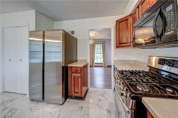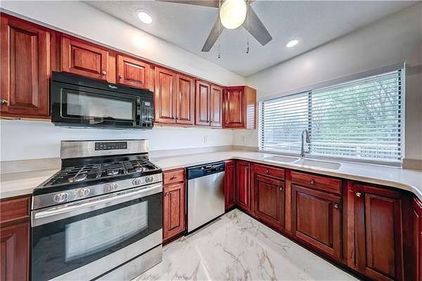 - Dishwasher, Gas Range, Microwave, Refrigerator, Stainless Steel Appliance(s)