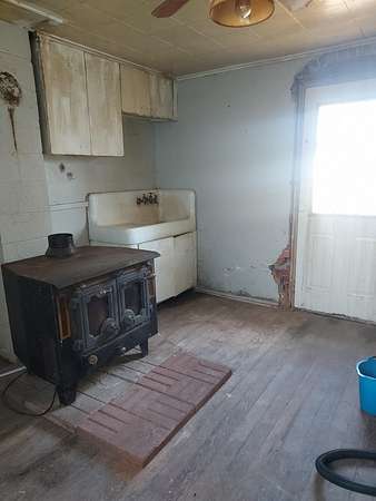 Peace and Quite. Secluded. If you like the sound of those words, this place is for you. 1.8 acres. All brick home built in 1910 with original interior door trims, solid Oak floors, and original Summer kitchen. Large living room, dining room, master bedroom w/ full bath, 2nd bath and kitchen on main floor. 3 bedrooms plus loft area up. Side entrance to house leads to main house and original Summer kitchen with original porcelain sink, entrance to basement with new steps and stairs to raised laundry. 30 x 70 garage with 3 overhead doors, concrete floors/heat in center two bays. Bonus 24 x 60 out building w/ concrete floors. needs roof House needs some TLC. 2nd bath needs totally gutted due to flat roof leakage. Kitchen cabinets need replaced. No appliances except washer/dryer. Furnace has not been used recently. Baseboard heat was used but furnace works. Windows replaced at some point, but needs new windows, Well pump is 1 yr, old. Midwest electric. 2 electric panels, one up/one down. This just needs someone able to put it back to its former glory. You will never find a quieter place and a Lovelier setting. SELLING 'AS IS' AGENTS PLEASE READ BROKERS REMARKS