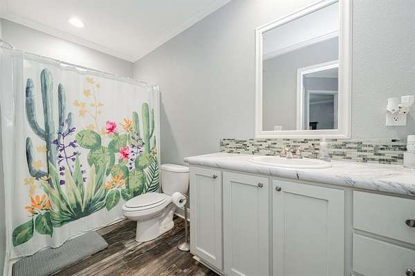 Tired of the concrete jungle? Escape the hustle and bustle of city living and discover the peace and serenity that country living affords you. This charming, well-equipped four-bedroom two-bathroom country home rests on two acres in Quinlan, TX! Great location outside city limits, but close to Highway 34 and 276; allowing easy access to both Rockwall and Greenville. You can feel the pride of ownership and the inviting feeling bestowed upon entering the residence. The open floor plan maximizes the space and gives the home a charming feel. An oversized living room flows into the eat-in kitchen, and provides an ideal environment for family gatherings and entertaining guests. The kitchen features an abundance of natural light, farm sink, modern appliances, large island, and plentiful cabinetry and counterspace to pursue your culinary adventures. The primary bedroom is 16x14 and features a beautiful en-suite bathroom with dual sinks and beautiful freestanding bathtub. A large rear deck and children's playground make the backyard a great place to grill or let the kids run free. This home offers the convenience of city living with the comforts of the country. Schedule your showing today, and make this dream home your reality today.