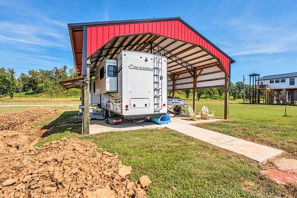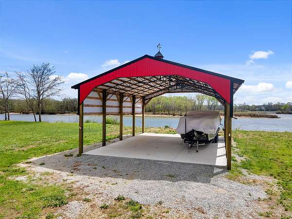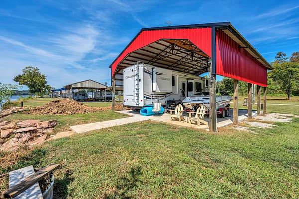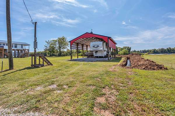 Est $942/moAcross from Beech Creek Island. Almost a half acre with 30x40 pole barn. Barn built with 8x8 posts and metal truses featuring 2 coup-alas is ready and waiting for your motorhome. Septic is in. Water is available. Concrete pad is 6" thick with extra rebar. Floating dock in place !