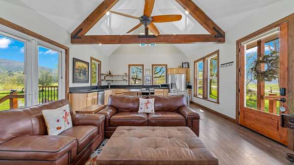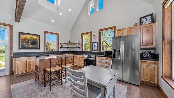 Est $3,278/moVaulted ceilings, four dormers, 8 ft interior doors, furnace and wood stove, RV hookups, workshop and barn have lighting and electrical. Schedule your private viewing today. Realtor is listing agent.