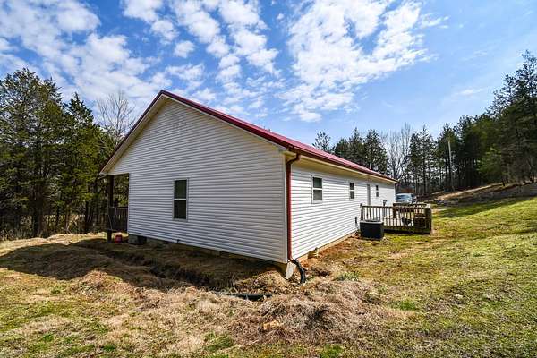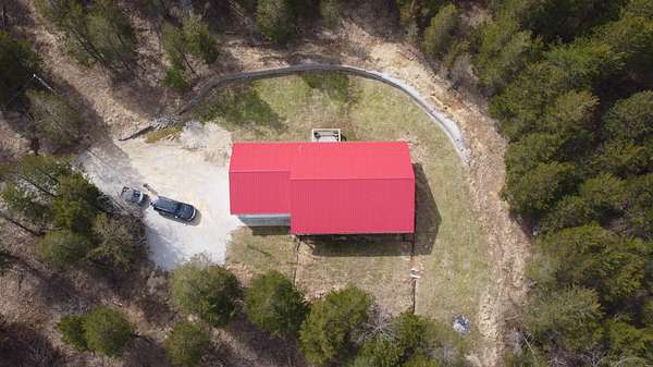 Rare opportunity to own 50 acres of prime hunting land with a nice home. The land is surveyed, has an older small hunting cabin in the woods, a barn, nice pond, small creek, marketable timber, and about 6 acres of cleared land. Trophy deer and turkey roam the land freely. The newer home is nestled in a private setting and some features are: nine foot ceilings, easy-close beautiful Hickory cabinets, quartz counter top, kitchen island with butcher block top, nice appliance package, LTV flooring in the living areas and bedrooms, and tile flooring in the bathrooms. The 2 bedroom home could be adapted to 3 bedrooms. There is a large 24' by 28' attached garage, with potential for many uses, and a 8' by 46' covered porch. Property does have recent appraisal, completed in 2025.