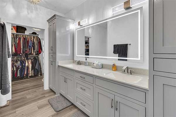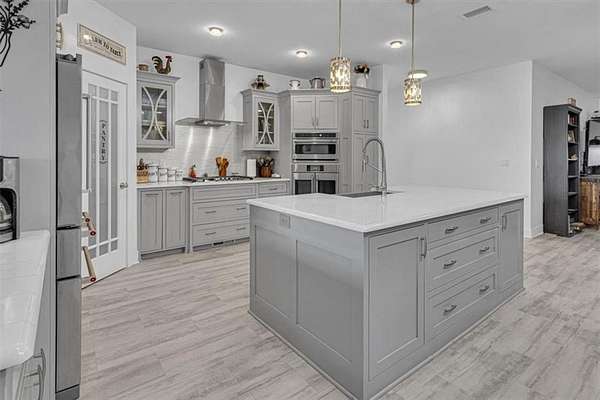 - Custom Cabinets, Kitchen Island, Pantry, Smart Thermostat, Walk-In Closet(s), Wet Bar