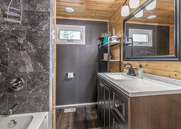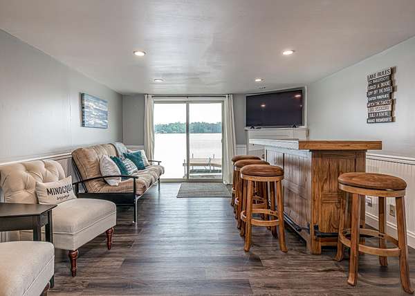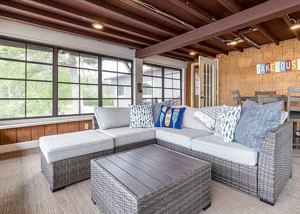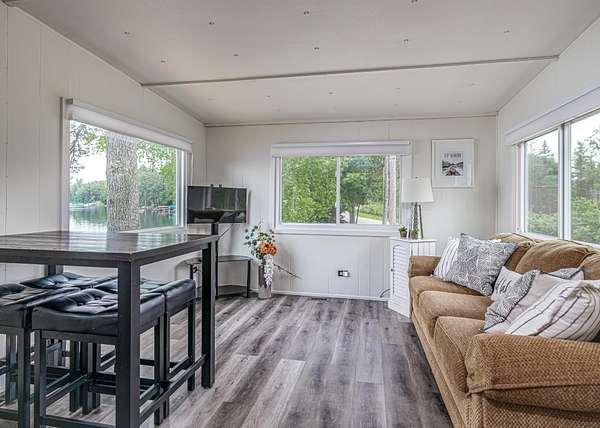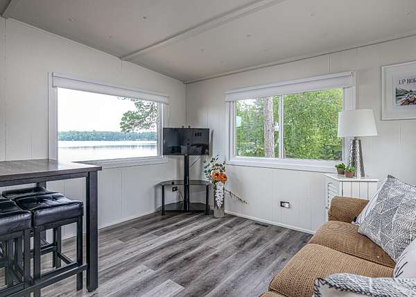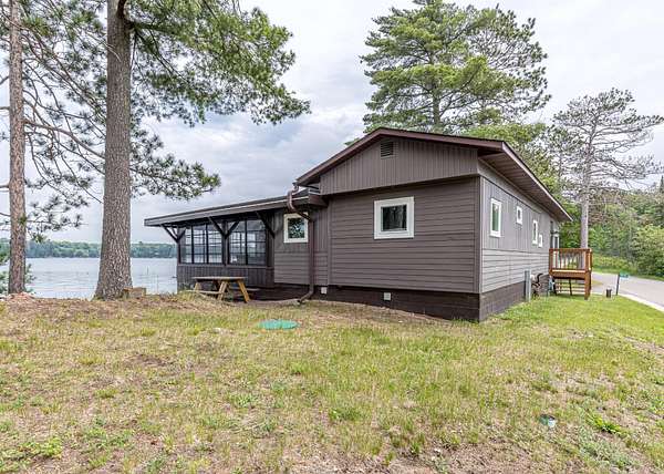 Northwoods Waterfront Retreat on the Minocqua Chain with good rental history! This beautifully updated 2BR, 2BA home sits on 8+/- acres with 282 feet of level frontage on Mid Lake-one of the quietest lakes on the chain. The home is just feet from the water, offering panoramic views and a true up-north feel. You'll love spending time in the 3-season room, from your morning coffee to late-night card games; this space will quickly become your favorite! Recent updates include new windows, flooring, a second full bath, and a laundry room. A private boat launch makes lake access easy, whether you're fishing from your dock or cruising the chain. Despite the quiet setting, you'll have access to all the recreation, dining, and shopping of the Minocqua Chain. There's room to grow, with the possibility of adding a garage or living space across the road. Also features high-speed internet, cable TV, and natural gas.