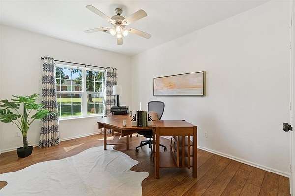 Spacious 36X36 out building is fully foam insulated with a 12x20 complete office/flex room that is temperature and humidity controlled. Remove the wall and the 2.4 tons of a/c will cool the entire workspace. The outbuilding offers double 10 ft sliding doors at each end, WiFi, and a 10x36 attached lean-to with a concrete floor.