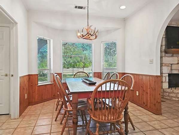The acreage itself is a natural masterpiece, boasting lots of elevation changes for diverse topography and stunning vistas, plus the charm of a seasonal creek. The home is a true gem, featuring a classic rock exterior, a durable metal roof, and a convenient 2-car attached garage. Start your mornings on the large front porch, soaking in the stunning view of the 3-acre, bass-stocked pond.