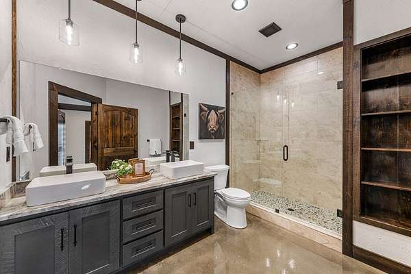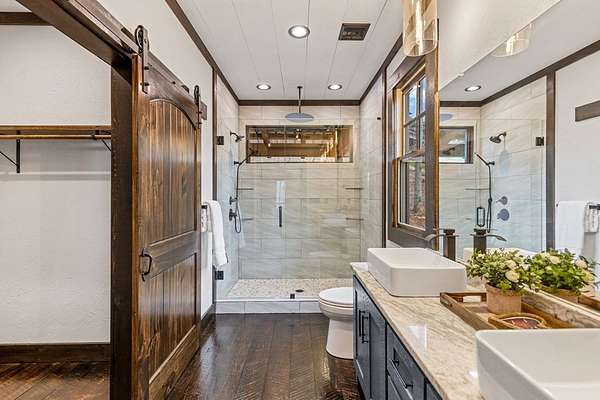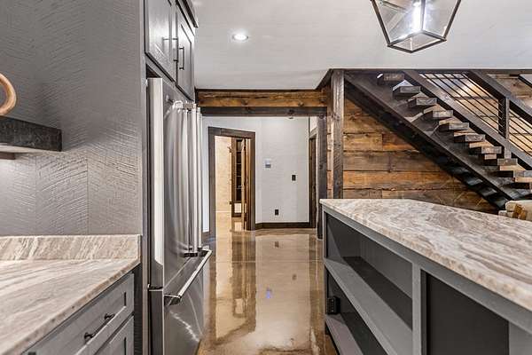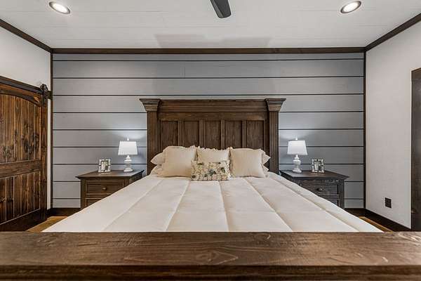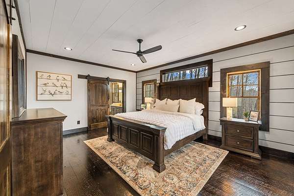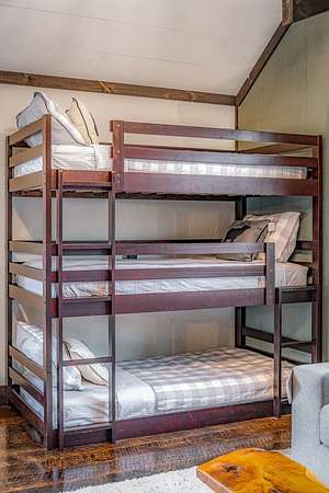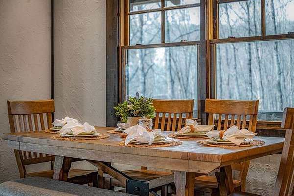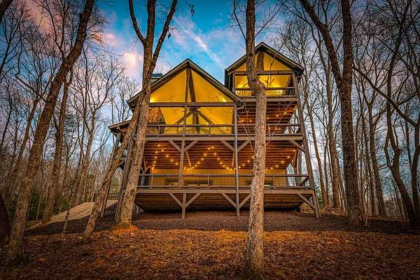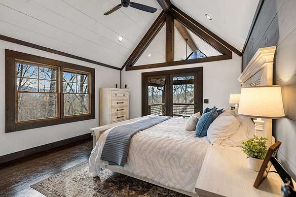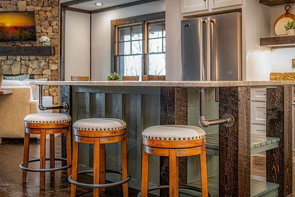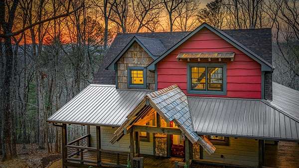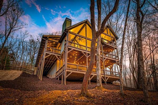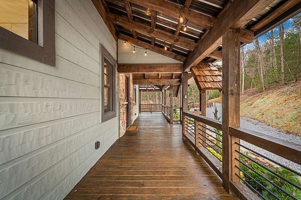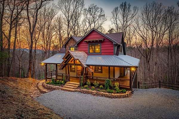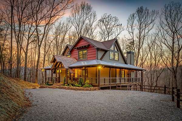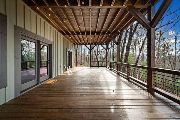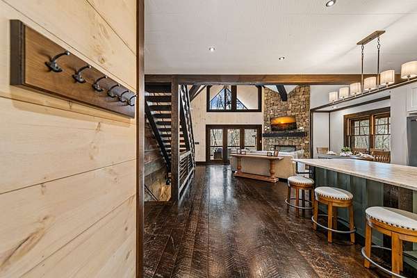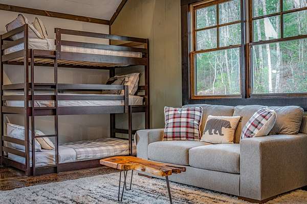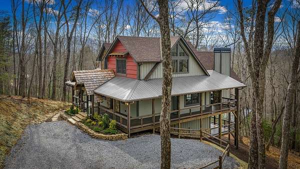 Discover the latest masterpiece by Nicholson Home Builders—a newly completed mountain retreat designed for both elevated living and exceptional rental performance. Thoughtfully crafted with a seamless blend of rustic textures and modern finishes, this home delivers a warm, high-end experience from the moment you step inside. The inviting great room is anchored by a dramatic floor-to-ceiling stone gas log fireplace, creating the perfect gathering space with an open, flowing layout. The chef's kitchen is equally impressive, featuring granite countertops, Viking appliances, stone accents, and an oversized island ideal for entertaining. A dedicated dining area provides ample space for hosting family and guests. Outdoor living takes center stage with a spacious covered porch designed for year-round enjoyment—complete with a wood-burning fireplace, TV, and dining area, making it an ideal extension of the living space. The primary suite on the main level offers a private retreat with a beautifully appointed ensuite bath with tile shower, and a generous walk-in closet. A half bath and well-designed laundry room complete the main floor. Upstairs, a versatile loft/bunk area provides additional sleeping space or flex use, along with a private ensuite bedroom featuring quality finishes throughout. The finished terrace level is built for entertaining, offering a second living area with another stone fireplace, a wet bar with full-size refrigerator and island, plus an additional bedroom and full bath—perfect for guests or maximizing rental occupancy. Offered fully furnished and turnkey, this home is ready for immediate enjoyment or income production. Located in a short-term rental-friendly community, it presents an outstanding opportunity for those seeking a refined mountain getaway with strong investment potential.