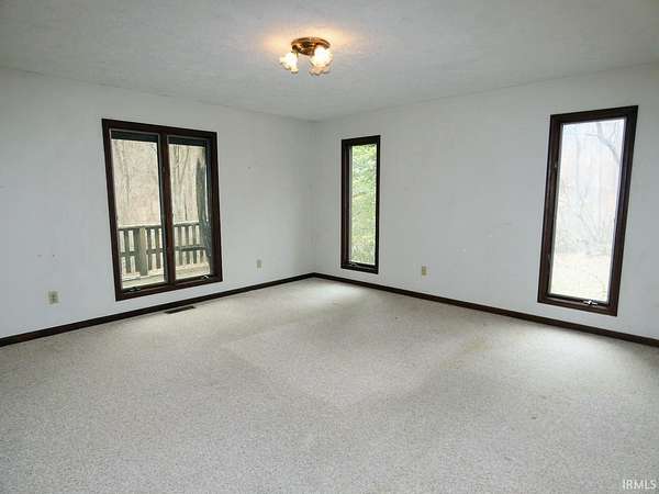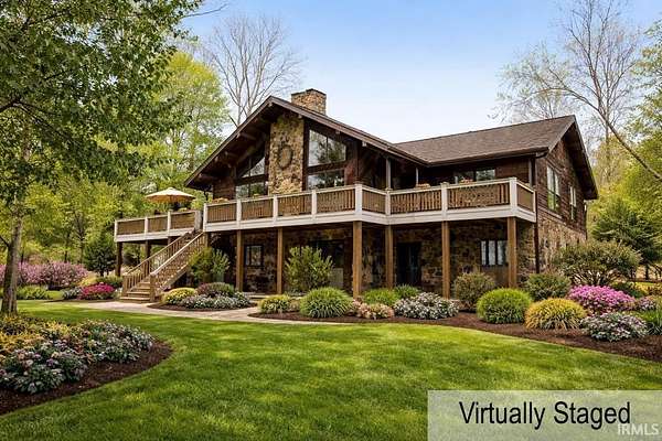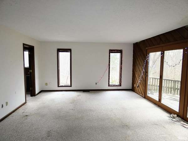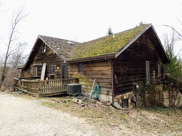 Rustic retreat on 16+acres m/l in northern Lawrence County offering privacy and peaceful country surroundings while still providing an easy commute to Crane, Bloomington, and Bedford. This 3 Bedroom 3 bathroom home is full of character and ready for someone to bring it back to life. Spacious living room features soaring 2 story cathedral ceilings, abundant natural light from large windows and a beautiful fieldstone fireplace as a focal point. The loft area overlooks the main living space adding to the open cabin feel. Enjoy the wooded acreage, wildlife, and the potential to create your own private retreat in this unique property.