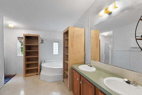 - Blinds, Ceiling Fans, Electric Range, Fireplace, Laminate Counter, Laundry/Utility Room, Living Room, Top Load Washer, Washer, w/ Hookups