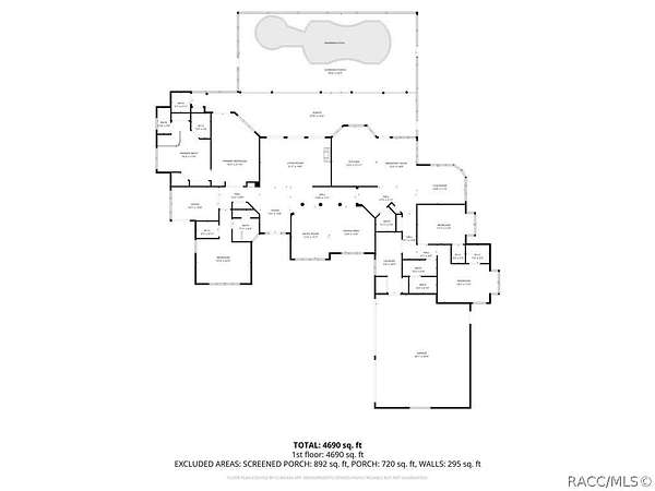 Absolutely gorgeous waterfront estate located on a breathtaking peninsula within the desirable deed restricted community of Sweetwater Pointe. Situated on a serene 3-acre cul-de-sac parcel, this impressive residence offers 4 bedrooms, 3 full bathrooms, and 2 half bathrooms with 4,131 square feet of living space. This custom home is well suited for entertaining, a growing family or multigenerational living. Thoughtfully designed with a split floor plan, the home showcases elegant crown molding, plantation shutters, and a blend of volume, tray, and vaulted ceilings throughout. The gourmet kitchen features a center island with breakfast bar, granite counters, rich wood cabinetry, pantry and stainless-steel appliances including a double oven, warming drawer, gas range, refrigerator and wine cooler. Multiple living spaces include a formal living room with wood-burning fireplace, family room/piano room, dining room, dedicated office with built-in desk, charming reading or sunroom, and the spacious interior laundry room is thoughtfully designed with a sink, washer, dryer, and dedicated sewing area. The primary suite provides a luxurious retreat with a sitting area, garden tub, separate shower, dual vanities, and a walk-in closet, a junior suite with full bathroom and walk-in closet, and two generously sized guest bedrooms-each with window seats and walk-in closets offering comfort for family and guests. The exterior presents an impressive, covered entry, heated saltwater pool and spa within a screened enclosure, complemented by a covered brick paver lanai and a convenient pool bath. Additionally, there is a secondary glass enclosed side porch and an oversized side-entry garage with epoxy flooring. This exceptional property offers three acres with mature oak and palm trees overlooking a captivating waterfront view surrounded by wildlife.