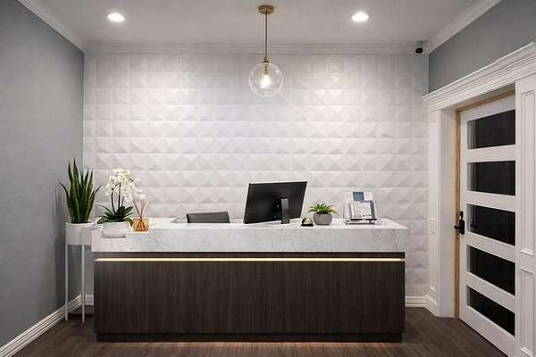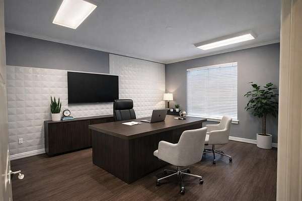 This 1,150 square foot upscale office suite features a modern, high-end finish throughout -- far beyond a standard build-out. The thoughtfully designed floor plan includes a private entrance, reception area, conference room, 3 private offices, restroom, and dedicated break area.