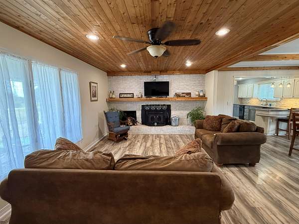 This amazing 4 bedroom (one is non-conforming) 2 bath home that sits on 1.8 acres is located just outside of Monett. This property offers exceptional flexibility - use as a nighty rental or for your personal residence! The short time this has been used as a nightly rental, it has profited approximately $2000.00 a month. This beautiful home boasts two wood burning fireplaces, private fenced-in area with entry into the two-car garage that has a kennel located just inside that could easily be removed. The open concept kitchen-dining-living area is great for entertaining. Three nice sized bedrooms upstairs with the master having ample closet space and a beautiful updated modern master bathroom with a walk-in shower. Downstairs you'll find a nice game room/movie theater style basement with a music room/4th bedroom. Two separate areas can be used for storage or/and storm shelters. This beautiful brick home sits on a nice sized 1.8-acre corner lot with beautiful sunsets and sunrises. You want to be in the country but close to all the conveniences of town? This is it! Whether you are looking for a unique business opportunity or your forever home this one is for you!
