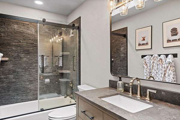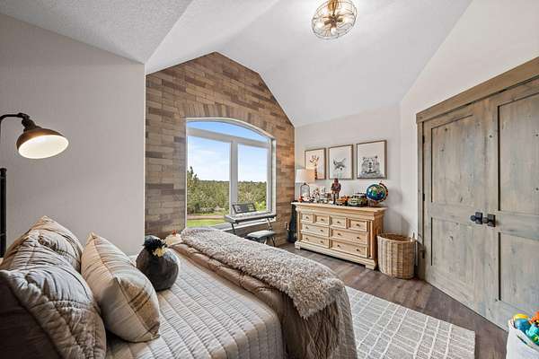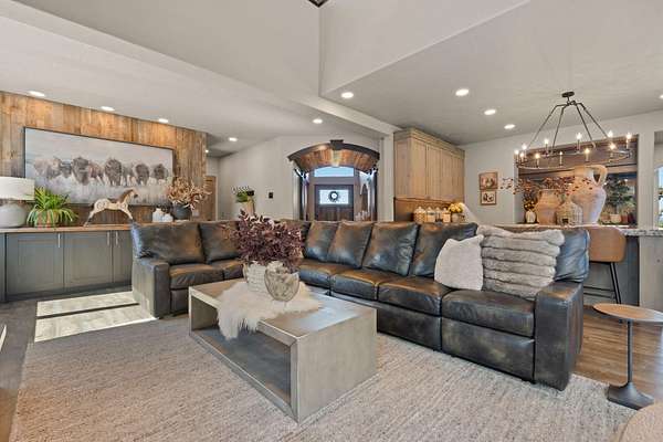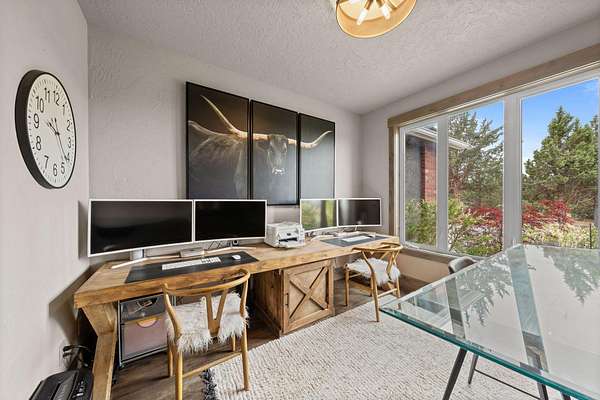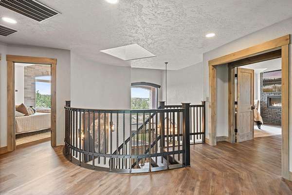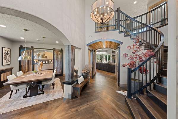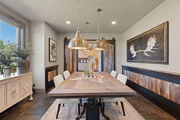 This completely updated home offers the perfect blend of rustic charm and refined elegance, with a balanced combination of natural elements and modern finishes. The rustic features such as metal and reclaimed accents add warmth and character, while the refined touches, like quartzite counter tops, steel wrapped fireplace and contemporary fixtures create a sophisticated atmosphere. Heated floors in the primary bath. All bedrooms upstairs. New zoned heating and AC units. Beautifully landscaped yard, with new 3 hole putting green, perfect for outdoor entertainment or relaxing. Home sits on 5 acres with great mountain views and views from almost every room. Two huge paver patios, propane fire pit and outdoor TV. Beautiful fenced, raised bed garden. Huge 40' x 42' shop with 2) 10' x 8' doors and 1) 12' x 16' door. See attached documents for list of updates to this beautiful home.