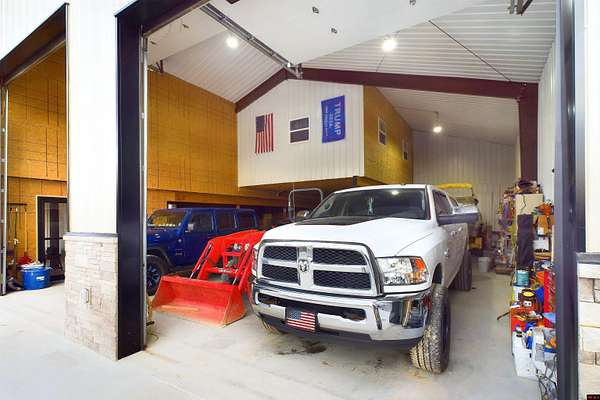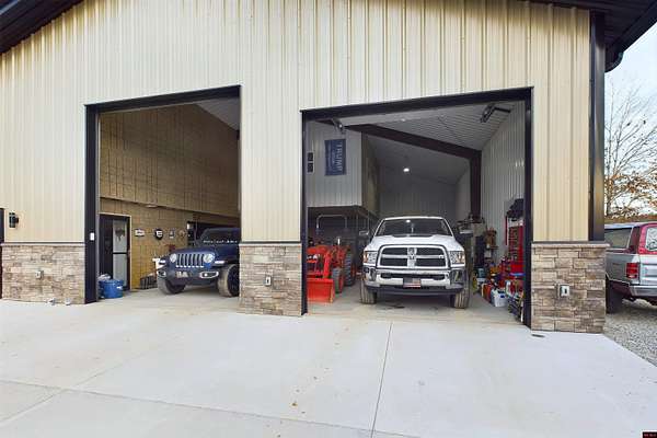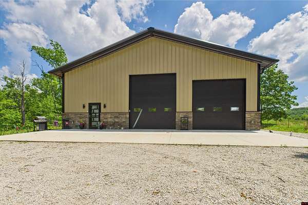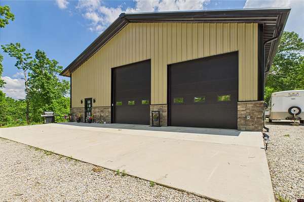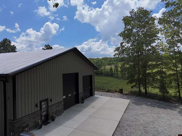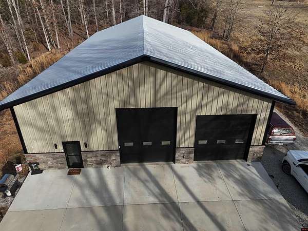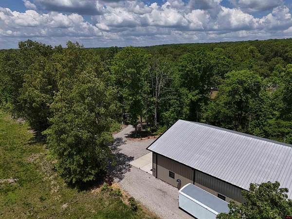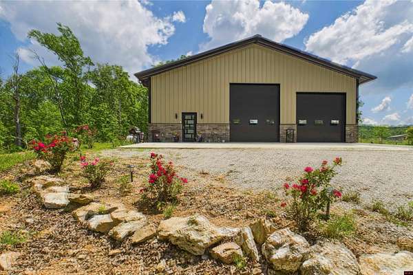 Stunning Red Iron Building on 7 AC M/L with Creek & Gated Entrance! Discover this exceptional 5,000 sq. ft. red iron building, completed in 2022, just five minutes from Mountain Home and only 10 minutes to the White River and Norfork Lake. This property features a lovely 2-bedroom, 1.5-bath space with custom finishes, including a beautifully designed kitchen with craftsman-style cabinets and vaulted ceilings. Perfect for hobbyists and automobile enthusiasts, it includes a spacious 2,300 sq. ft. heated shop with an office, plus an auto lift, paint booth, and dust collector (negotiable). A generous 50x50 garage provides ample storage for all your toys. Enjoy the tranquility of a creek and the security of a gated entrance. A large storage room can easily convert to a third bedroom, and an approved perk test for an additional home site offers expansion potential. With breathtaking views of a picturesque farm, this quality-built property offers endless possibilities. Check out the 360 tour