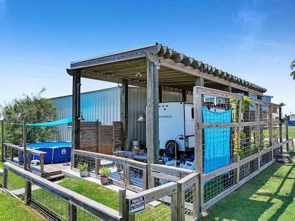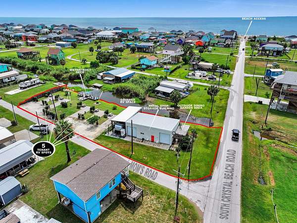 Discover this unique opportunity to own a fully operational RV park with 5 RV spots in the heart of Crystal Beach. Each thoughtfully designed space includes its own raised herb garden, jasmine-covered trellis, water and electricity hookups, creating a welcoming retreat for guests. A shared community deck overlooks the water, offering a perfect spot for relaxation and gatherings. Additional amenities include an owner's covered RV spot, a convenient outdoor shower with a tankless water heater. This property also includes a 20x40 wood-frame storage facility with road frontage on Crystal Beach Road--ideal for a business, workshop, or additional income opportunities. A portion of the storage facility is temperature controlled, expanding its usability for multiple purposes. The owner's RV and rental business inventory can be negotiated in the purchase, making this a truly turnkey investment with immediate income potential. This property has amazing possibilities and is waiting to be yours!