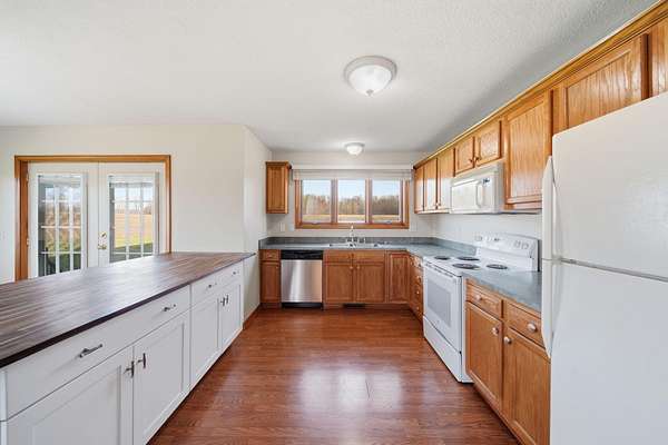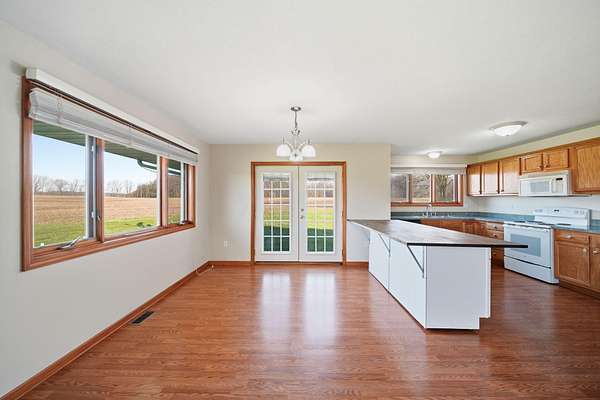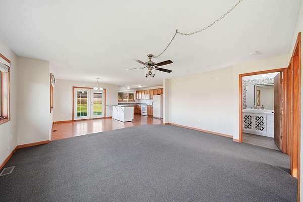 Open House: Sat. 4/25/26 2 - 4 PM. Nestled on a generous 2.2-acre lot, 896 Fields Road offers a rare opportunity to embrace peaceful country living without sacrificing modern comfort. This sharp and meticulously maintained 3,800-square-foot ranch is entirely move-in ready, featuring fresh paint throughout and a high level of attention to detail following a series of thoughtful updates and repairs. The main level is designed for effortless daily life, centered around a bright and airy open-concept kitchen that flows seamlessly into a spacious dining area. Large flat bay windows in the living room act as frames for the picturesque landscape, flooding the home with natural light and serene views. The primary suite serves as a true retreat with its own en suite bathroom and a generous walk-in closet, while two additional bedrooms and a conveniently located laundry room round out the main floor. The potential of this home extends far beyond its primary living space, thanks to a massive full walk-out basement that stands ready for your fitness equipment, entertainment, hobbies, or significant storage needs. Outside, the property transforms into a private sanctuary where the absence of immediate neighbors and frequent wildlife sightings create a genuine connection to nature. The expansive acreage provides a blank canvas for your outdoor ambitions, whether you dream of flourishing gardens, a custom pole barn, or space for recreational activities. Enjoying the tranquility of the property, the seller currently observes "No Mow May" to support the regional bee population, further enhancing the natural charm of the grounds. With a two-car garage and endless options to personalize both the interior and exterior, this property is the perfect alternative to subdivision living for those ready to make their mark on this peaceful country home. A licensed agent must be present during showing. Buyer and buyer agent to verify all data/measurements. Schedule showing: