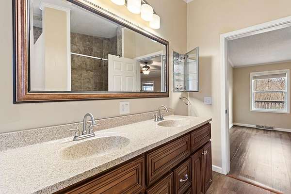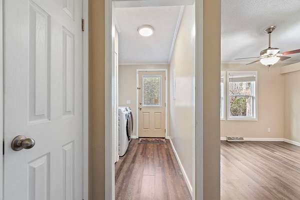 - Ceiling Fan(s), Double Vanity, Kitchen Island, Laundry On Main, Pantry, Primary On Main, Smoke Detector, Tile Shower/Tub, Vaulted Ceiling(s), Walk-In Closet(s), Washer/Dryer Connection