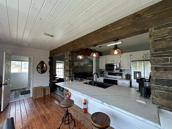 Don't miss this opportunity to live on the Caddo River in a Vacation Rental Property through Thanksgiving, Christmas & New Years. Calling all Snow Birds, escape the frozen North. Experience Riverside Serenity in Glenwood! Nestled on the banks of the enchanting Caddo River, discover a cabin retreat that marries rustic charm with luxurious comfort. Whether you're looking for a romantic getaway or a family adventure, our cabin promises an unforgettable stay. Revel in the grandeur of a living room crowned with soaring cathedral ceilings. King-sized bed nestled in the master bedroom & a master bathroom beckons with a spa-style bath & shower area.