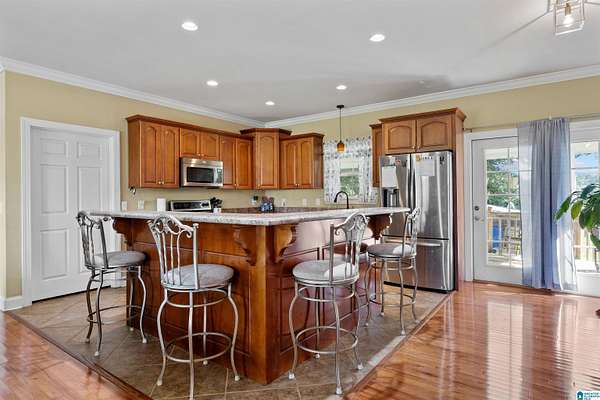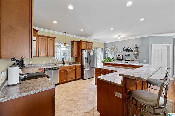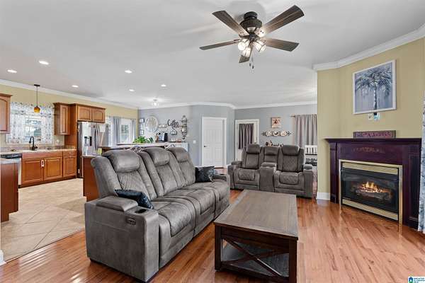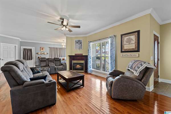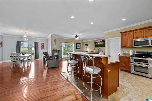 Welcome home - the perfect blend of country comfort and everyday convenience! This one level home sits on 1.75 beautiful acres just steps from Cold Springs School and only minutes from Smith Lake and Cullman. Step inside to find over 2,000 square feet of open-concept living space featuring 3 spacious bedrooms, 2 full baths, and a family room with a gas fireplace--perfect for gatherings or quiet evenings. The kitchen offers ample cabinet space, a breakfast bar, and stainless appliances, opening to a bright dining area overlooking peaceful countryside views. Outside, enjoy your morning coffee on the covered front porch, relax on the back deck, or let pets roam freely across your private, tree-lined property. With a two-car garage, hardwood and tile floors, and a newer heat pump, this home checks every box for low-maintenance living. Whether you're raising a family, downsizing, or looking for a second home near Smith Lake, this one-level gem offers small-town charm with room to breathe.