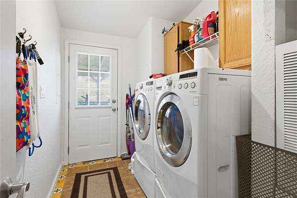 - Ceiling Fans, Dining Area, Dual Sinks, Kitchen Island, Laminate Counters, Laminate Countertop, Pantry, Primary Suite, Separate Shower, Shower Only, Utility Room, Vaulted Ceilings, Walk In Closets, Window Treatments