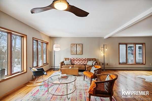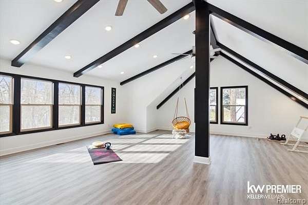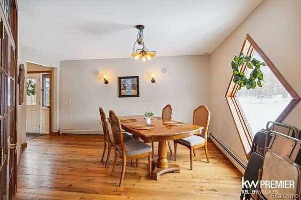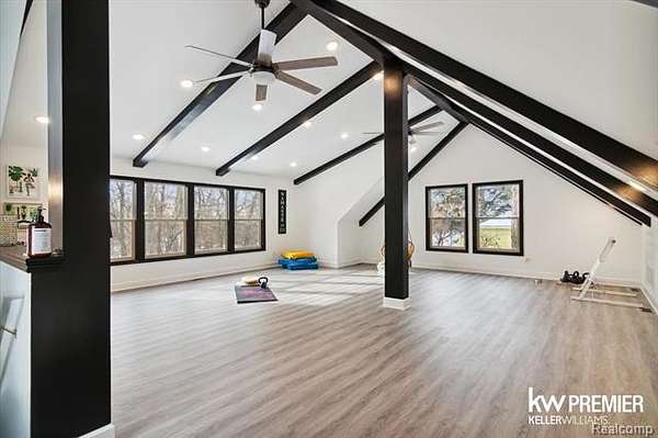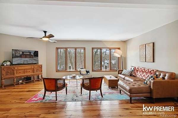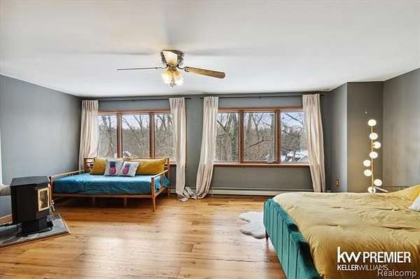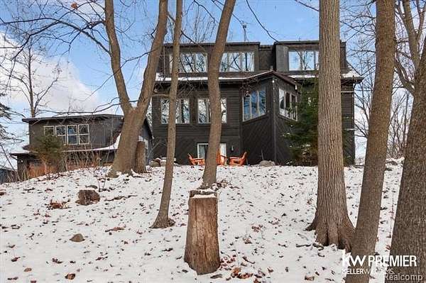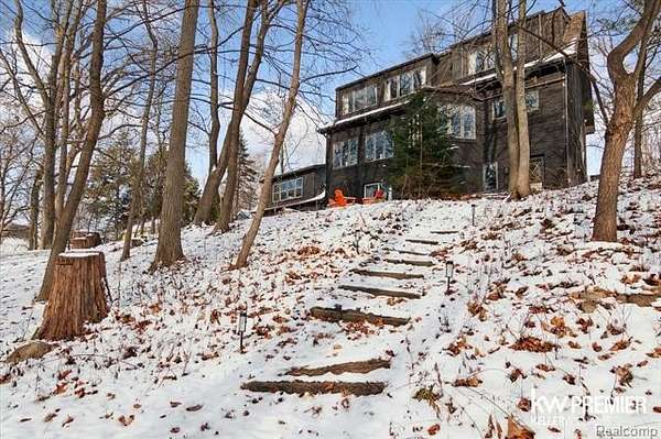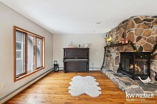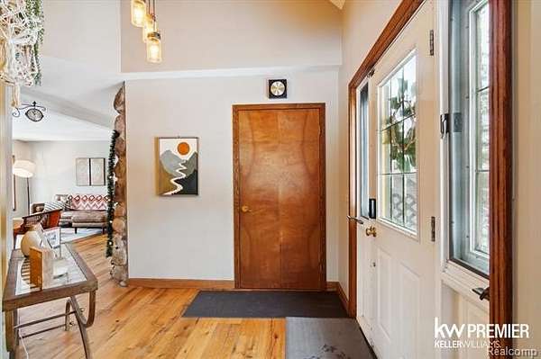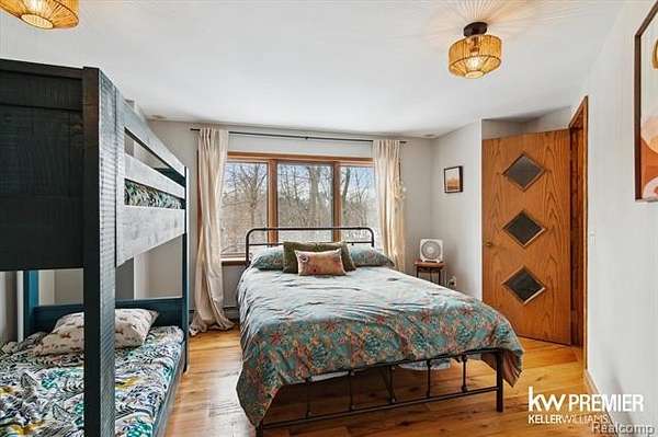Unique hilltop home on 1.5 wooded acres with an Up North feel--plus a sauna and a fully renovated loft studio! Vaulted ceilings, an abundance of natural light, a stone two-way natural fireplace, and wide-plank reclaimed barnwood floors create a warm, inviting main level. Updated kitchen features custom cabinets, quartzite counters, subway tile, and a panoramic breakfast nook. Upstairs offers two spacious bedrooms with large walk-in closets and a renovated full bath. The walkout lower level includes a full bedroom, living area, beverage kitchen, updated bath, laundry, and private sauna. The detached 2-car garage boasts a fully finished, heated, and cooled loft perfect for a studio, office, or guest space. Minutes to I-96, downtown Milford, and Kensington Metropark. Schedule your showing today!