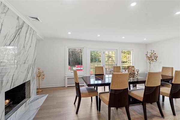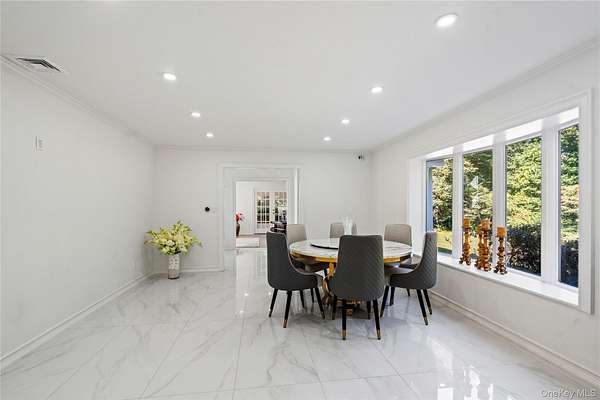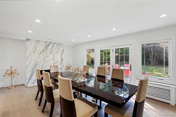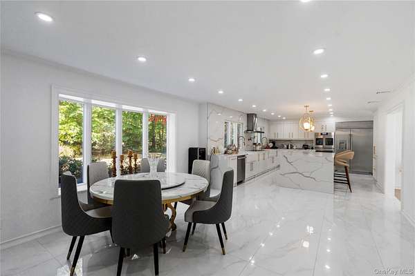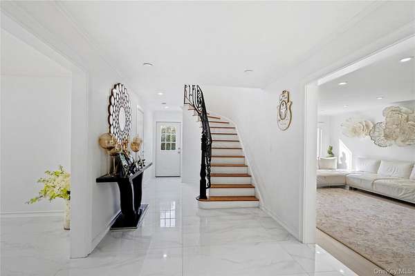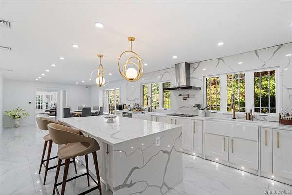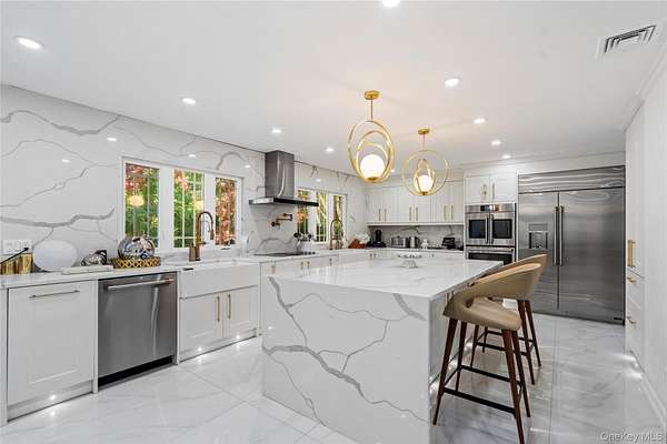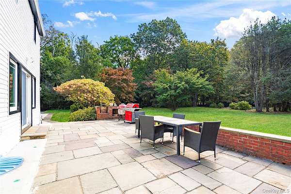 With all that is going on in this hectic world today, wouldn't it be nice to go back to a more peaceful time? But what about today's comforts and state-of-the-art amenities? Welcome to "Green Meadow" - a serene, park-like two acres of sprawling lawns, majestic trees, and a completely remodeled and updated white colonial sparkling like a diamond ringed by emeralds. Off a wooded country road in the heart of Long Island's North Shore area that is lovingly called the Locust Valley area, a recent competitor to the Hamptons because of its easy access from New York City and its many recreational, shopping, and dining venues, a home like this is a rare opportunity. It not only offers a timeless elegance with modern convenience but is close to mansion museums of the island's Golden Age, quaint village shops and restaurants, boating, beaches, nightlife, golfing, universities, theatres, equestrian and hiking trails, and high-end shopping centers. As you take a dip in your very secluded, estate-fenced inground pool or relax on your stone patio and look out on your property, visited occasionally by a deer or a fox, you can hardly believe your good fortune to enjoy a pristine, four-bedroom, three-bath home offering the latest in luxury living and modern elegance ideal for entertaining guests in style and grace. After driving up a tree-lined circular driveway and walking past a striking Japanese maple, guests will be impressed by the new Pella windows, classic front portico, and new, imported front door. It opens to a bright and airy foyer with bridal staircase displaying an elegant wrought-iron-filigree balustrade. Gleaming porcelain floors flow into the rear hall that opens to the rear patio and to an exquisite new powder room. A wide doorway leads into the spacious living room, illuminated by large front and rear windows, LED lighting, and featuring new white oak hardwood floors and French doors opening to a spacious loggia. Adjoining the foyer, a cheery breakfast area has similar floors that flow into the chef's dream kitchen and light up when stepped upon. Ideal for entertaining, the sleek kitchen offers extensive cabinetry, a large waterfall center island, two workstations with farm sinks beneath triple windows, and high-end Cafe stainless steel appliances that include two wall ovens, large refrigerator/freezer with in-door ice and water, two dishwasher, beverage cooler, and glass cooktop with hood and pot filler. The adjoining, elegant, banquet-sized dining room is filled with sunny views of the backyard through a wall of windows and French doors to the rear stone patio, an ideal place for al fresco dining. A wood-burning fireplace, faced in marble-like porcelain, adds a dramatic focal point to the space. Also, off the kitchen is a well-equipped laundry/mudroom (new washer and dryer), with entry to the attached two-car garage. One the second floor, large, new, dramatic hall bathroom, featuring lapis-lazuli-style porcelain-covered walls, floor, and shower, serves three bedrooms, each with two windows, hardwood floors, and a closet. In its own wing, the primary suite includes a large bedroom with three windows, hardwood floors, a small closet plus a large walk-in closet, and an attractive, new primary bath with large twin vanity, towel warmer, glass-enclosed dark-blue porcelain shower, and marble-like porcelain walls and floors. A full, unfinished basement with high ceiling offers ample space for storage and/or expansion. Let your imagination run wild. Additional features include new flooring throughout; all new plumbing; new central-air with compressor; three-year-old emergency generator, inground sprinklers, and new roof. Come, experience this sparkling gem, and you will know you are home. View 3D tour and Floor plans.