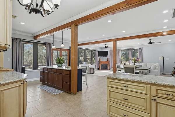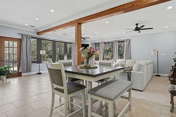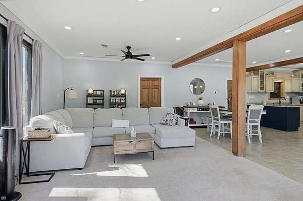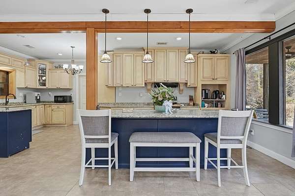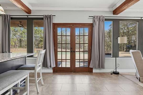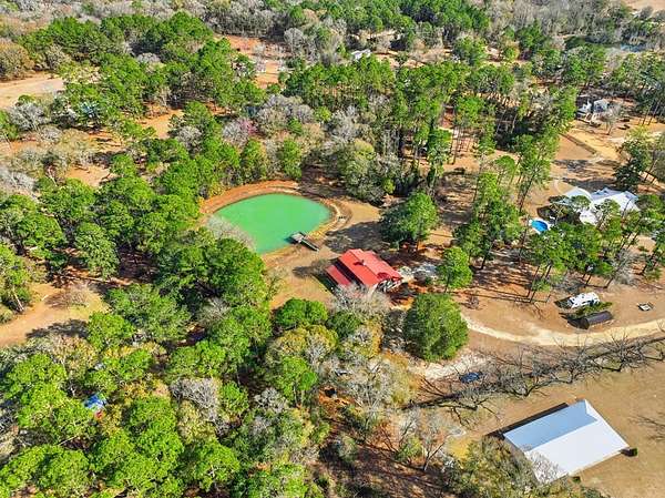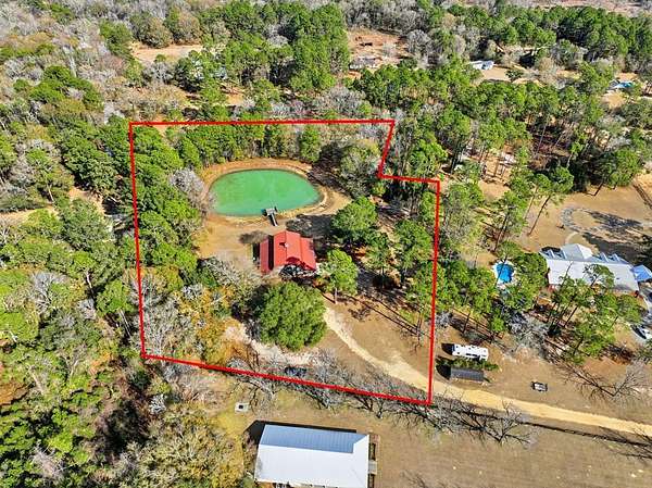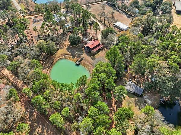 Exceptional 3-acre private estate just minutes from town. This two-story barndominium offers 3 bedrooms, 3 full baths, and 1 half bath with a thoughtfully designed layout featuring two bedrooms on the main level with expansive living spaces ideal for entertaining. The kitchen showcases custom cabinetry, granite countertops, generous prep space, and bar seating that flows seamlessly into the main living area filled with natural light. Upstairs offers additional flexible space used for entertaining with another full kitchen and half bath. A private third bedroom is tucked away thru the stable doors with a full bathroom. Outdoors, enjoy a beautiful pond with dock, gazebo, pergola swing, and distinctive barn-style architecture that sets this property apart. A rare blend of privacy, space, and character. This property is part of a larger tract and may be combined with the adjoining parcel, offering a total of 6.55 acres if purchased together.