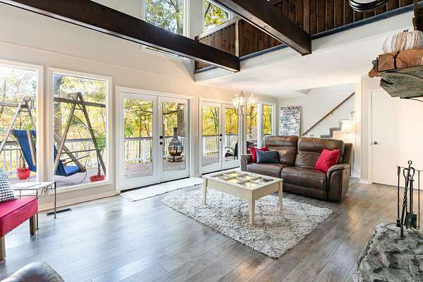 Welcome to "Peaceful Retreat"- a rare 3-acre sanctuary in Davidson County, tucked away in Pegram,TN! This stunning 3258 sq. ft A-frame home is perched on a hillside, offering a serene setting surrounded by mature woods and abundant wildlife. Inside you'll find 3 spacious bedrooms, with owner's suite on the main level, 2 full baths and 2 half baths, designed for both comfort and functionality. The main areas flow seamlessly to the outdoors, where a wraparound deck and a private screened-in porch create ideal spaces for entertaining, relaxing or simply enjoying nature. The finished walk-out basement with patio offers flexibility as a recreation room, second living area, or potential rental suite. Over the past 5 years the owners have invested more than $110,000 in updates and improvements, ensuring it is move-in ready. This lovely home is less than 5 minutes to I-40 and under 20 minutes to downtown Nashville! This property truly combines the best of both worlds: a peaceful retreat with unbeatable access to city life. It could be used as a vacation getaway second home too! Come see for yourself! PLEASE NOTE: Preferred Lender is offering $8000 off closing costs and a free appraisal!