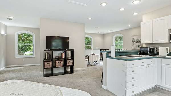 Rare opportunity in Mt. Juliet/Rutherford County! This beautiful 3BR/3BA stucco home sits on 6 private acres, offering endless possibilities for personal enjoyment or future development. The main home is one-level, move-in ready, with fresh interior paint and a stunningly renovated primary bathroom. Enjoy an inviting layout with spacious living areas for entertaining. The ADU has a kitchenette and full bathroom. Step outside to your own retreat- PERFECT for entertaining. A detached 3-car garage for extra storage or workshop space. There's plenty of room in the garage for a small workshop plus it has a third door for storing a lawn mower, ATV, motorcycle, etc.
