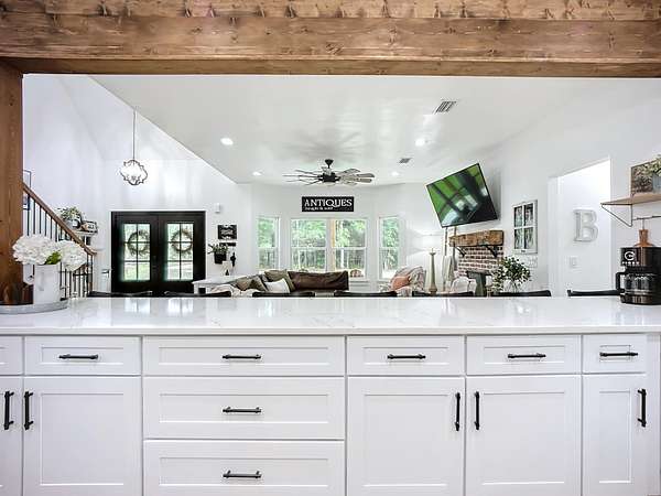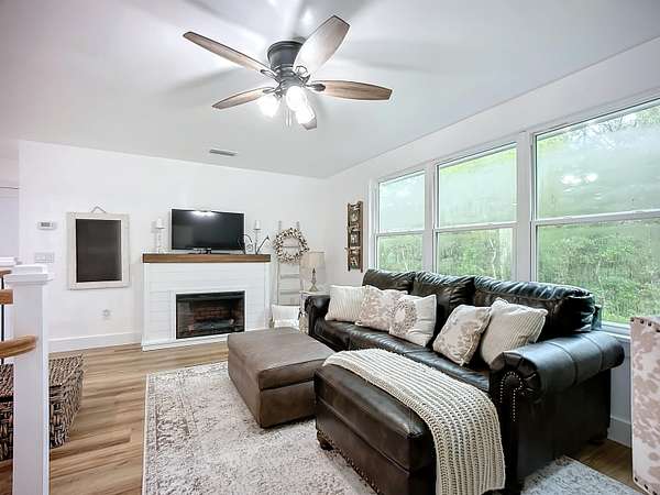 - Bedroom Downstairs, Cathedral Ceiling, Ceiling Fans, Disposal, Fireplace, Garage Door, Great Room, Insulated Windows, Shed, Water Softener