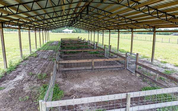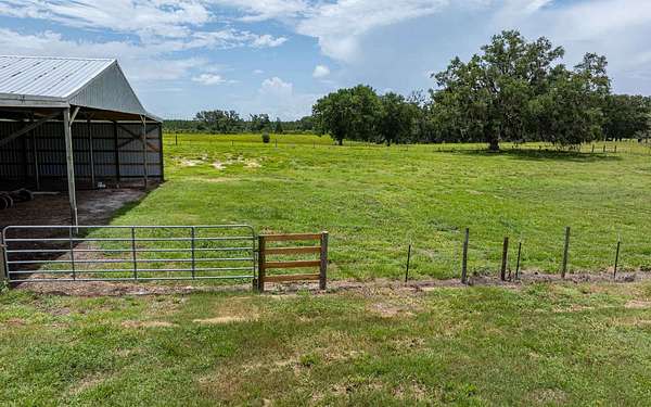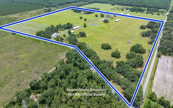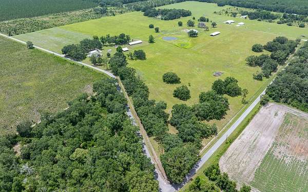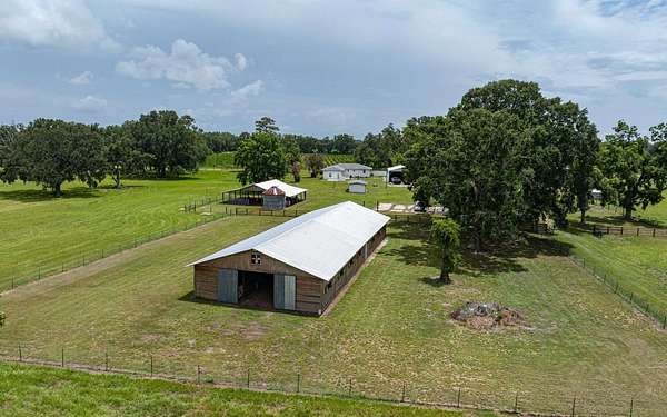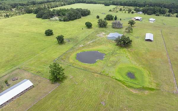 Exceptional 79-acre hay farm ideally located in North Central Florida between Live Oak and Lake City, offering frontage on two paved roads for easy access and excellent visibility. This fully fenced property is perfectly suited for horses, cattle, or a variety of livestock operations. The farm is well-equipped with an impressive 15-stall horse stable featuring oversized stalls, a 40x112 pole barn with animal pens, a large hay and equipment barn, multiple additional pole barns, and a cook house—providing ample space for storage, gatherings, and daily farm operations. The 3/2 main home was beautifully updated and remodeled and is truly turnkey, offering comfortable country living with modern finishes. The guest quarters offer a full bath with a walk-in shower, a laundry hookup, and a kitchenette. Perfect for a trainer, farm manager, extended family, or visiting riders. The well-maintained pastures provide plenty of room for grazing, riding, or expanding your operation. Enjoy peaceful views of rolling pasture dotted with scattered Live Oak and Pecan trees, along with a couple of ponds that enhance both the scenery and functionality of the property. A rare opportunity to own a well-maintained, ready-to-go farm in a prime location.