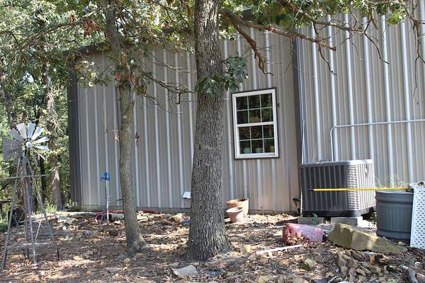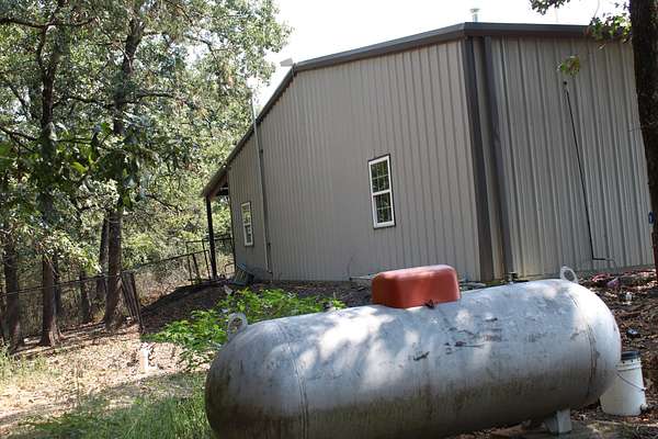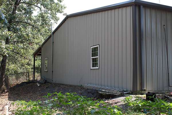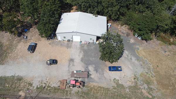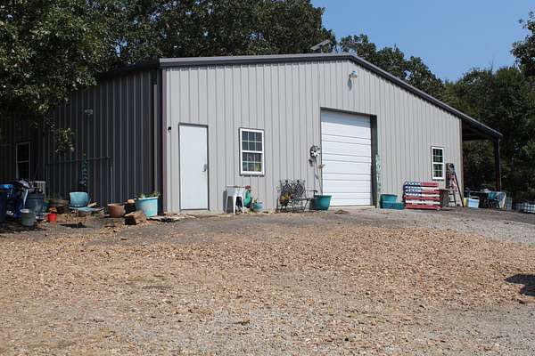 The property boasts a charming 2,000 sq ft shop house, also known as a barndo, complete with a 12 ft lean-to. Inside, you'll find a comfortable 2-bedroom, 1-bath living space with a dedicated laundry room. The open floor plan showcases polished concrete floors and a gorgeous, rustic kitchen, featuring a tin backsplash, butcher-block-style counters, and elegantly antiqued white cabinets. The concrete floors are easy to maintain and gleam with minimal effort. The spacious open area is perfect for family gatherings and entertaining. A pellet stove provides efficient heating, while central AC/heat ensures year-round comfort. This property is a perfect blend of functionality and rustic charm! A well on the property provides the water.