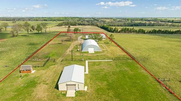 Welcome to the move-in ready HOBBY FARM located just north of Clarksville, Texas in Red River county! Just bring your animals, garden tiller and get ready to enjoy life in the country! Drive through the security gate and take a look at all this property has to offer. The home is approximately 1760 sq ft of living space featuring open living floor plan and split bedroom configuration. The spacious living-dining-kitchen area makes you feel right at home with wood flooring, high ceilings, gas log fireplace, breakfast bar that will seat up to 6 and ample lighting. Prepare your favorite meals while visiting with family and friends from the open kitchen featuring stainless appliances, custom cabinetry, pantry and prep space. Primary bedroom is spacious to accommodate multiple furnishings with ensuite bath, dual vanities, separate shower, jetted tub and walk-in closet. Two additional bedrooms with shared Jack and Jill bath complete the sleeping quarters. The utility area is conveniently located just inside the carport door and opens into the kitchen. The home office located just outside the house provides complete privacy for conducting business. The 48x80 Quonset Hut is set up for ultimate use. With two storage areas inside, divided into 4 units, a wash bay station with deep sink the hut is perfect for those FFA show animals. Additionally, there are 2 roll-up doors to pull through trailers and equipment with ease. The 30x55 shop building, insulated and climate controlled with industrial insulated commercial doors. is ready to use as you so desire. The greenhouse, complete with water and electricity is perfect for garden starters or hydroponic gardening. And there is still plenty of ground to plant a vegetable garden! Perimeter is completely fenced. Never worry about losing power with the Generic with its own 500-gallon propane tank. List of all amenities available upon request.