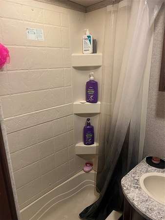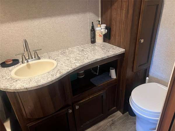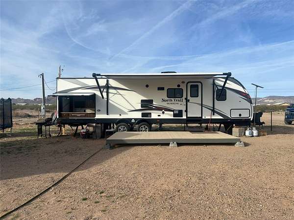 Rare improved lot with electric, water, and a permitted septic system already in place-cleared, leveled lot with easy street access, fully improved and ready to use. Electric and water meters are already installed, along with a permitted septic system. The property features a 1,000-gallon septic tank approved for a 3-bedroom home, making it ideal for immediate RV use or future dream home construction. Improvements include a 50-amp RV pedestal with 240-volt panel service, a dedicated water line with freeze-proof spigot, and two RV septic clean-outs. The trailer is a 2018 North Trail 32' Ultra light, also a 40' storage container, and a 10x19 insulated storage room with hardwood floors and electric