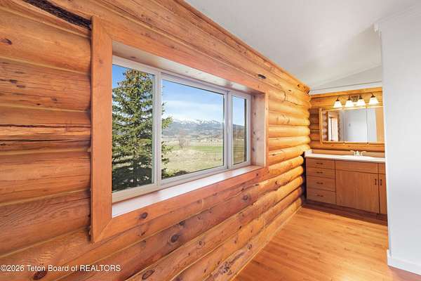 Private. Scenic. Room to breathe. This 3.99-acre Etna property delivers the Wyoming lifestyle you've been looking for--wide-open views, abundant wildlife, and space to live the way you want. Tucked back for privacy, this log home sits on a generous lot with plenty of room for kids, horses, or that dream shop. Inside, you'll find an open-concept living and kitchen area that feels welcoming and functional, plus a main-level primary bedroom for easy living. Step out onto the covered front deck to take in the views, or fire up the grill on the back deck and enjoy long summer evenings. Efficient geothermal heat paired with a cozy wood stove keeps things comfortable year-round. Located in a great neighborhood just a short drive from Jackson, this property offers the perfect balance of seclusion, space, and convenience. Views. Space. Freedom. This one checks all the boxes.