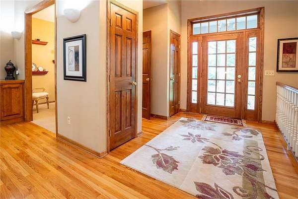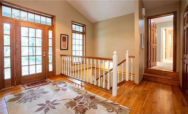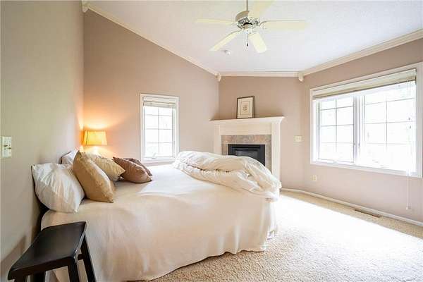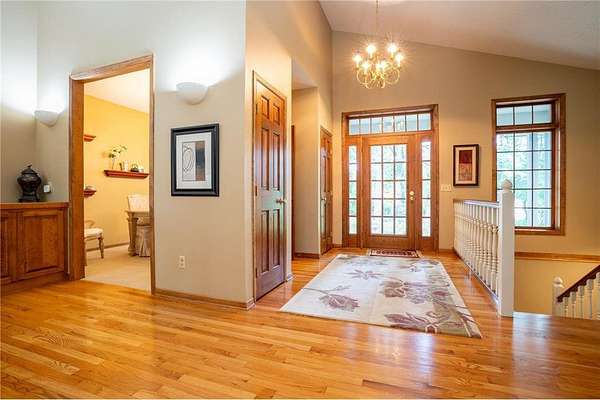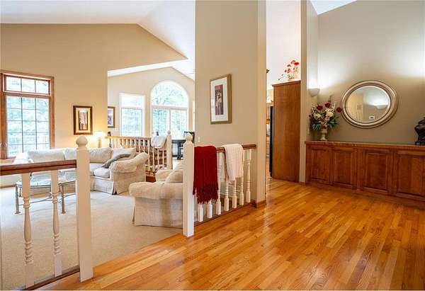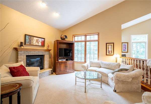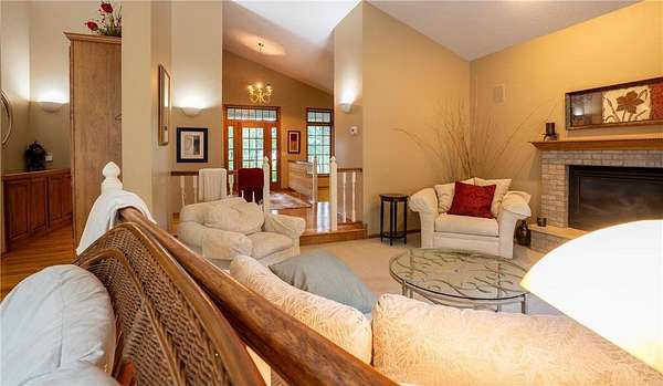 This unique custom-designed home features an open floor plan, with all living spaces conveniently located on the main level. The large kitchen is equipped with granite countertops, a center island, and a cozy breakfast nook. The sunken living room, with large windows, features a fireplace ideal for relaxation.Adjacent to the kitchen is a formal dining room. The step-up owner's suite features a private bath with a jetted tub, a separate shower, and an additional powder room with a sink. It also features a spacious walk-in closet and a fireplace. Additionally, the home includes an office and a game room that can easily convert into a fourth bedroom. An outdoor maintenance-free deck and a walkout basement enhance the living space. Nestled on 2.5 acres of natural beauty, this property is truly a hidden gem.