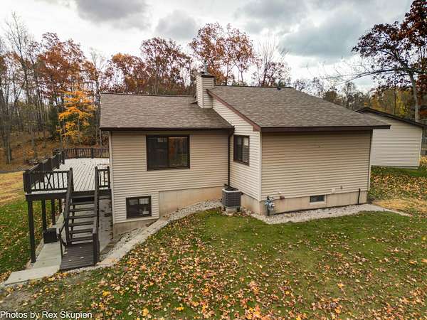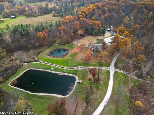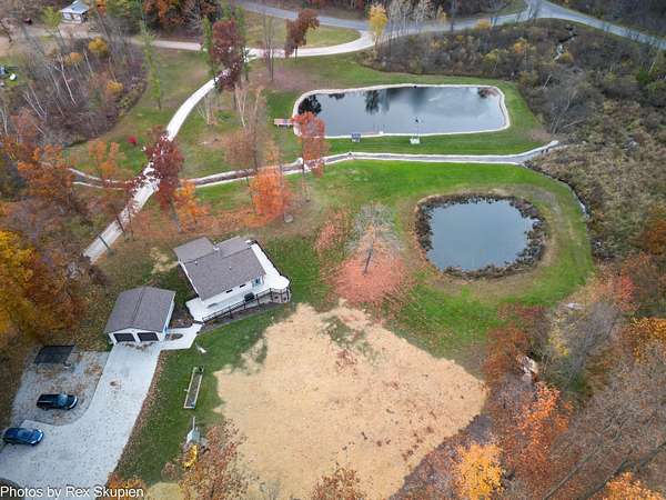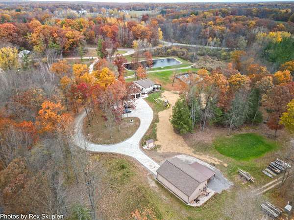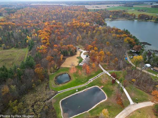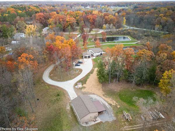 Attention Outdoor Enthusiast! Check out this slice of Heaven located in southern newaygo County walking distance to Englewright Lake and just a few miles to US131 exit 104 making a commute to Grand Rapids or Big Rapids a dream. This property boasts 17 acres of beautiful rolling hills along with two ponds and a creak that meanders thru the front yard. There is a two-stall detached garage and a 30x40 pole barn to store all your toys in. Long concrete driveway takes you along the manicured lawn over a small bridge and perched on top of that bluff is a lovely ranch style home. Large wrap around deck will great you at the back door. Stepping inside this ranch home you will appreciate the large entry way with plenty of storage. Large, vaulted ceilings with open concept design in the family room dinning and kitchen. Large windows to let in all the natural light not to mention spectacular views from every window. The main floor also has 2 good size bedrooms and a full bathroom. In the finished lower level there is another living area with a full kitchen full bathroom family room and an additional bedroom. This home has been meticulously maintained since it was built in 1989. There is new carpet on the main level and in 2019 a new roof was installed along with a new NATURAL GAS furnace. In October of 2025 a new drain field was installed. The home is wired for a generator and has a water softener that is owned.