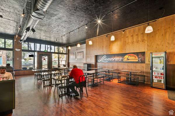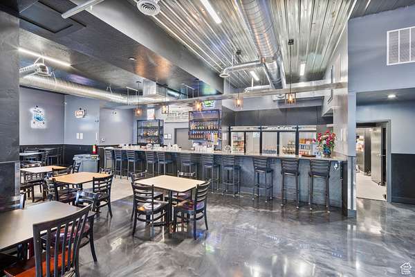 This mixed-use commercial building is comprised of 6 separate parcels and sits prominently in the heart of Magna's walkable Main Street corridor. Positioned for superb entertainment venue, newly renovated bar, restaurant activation, the property includes an existing tenant operated, popular restaurant, a conditional liquor license for possible transfer, architectural and engineering plans, offering a head start for operators. This facility has all new HVAC, air purifier, lift for stage, high-end Berg alcohol system, new restrooms, updated electrical and plumbing systems. This standout Main Street property has been newly refurbished from top to bottom, showcasing a modern interior designed for a modern entertainment venue, stylish bar and popular restaurant. Inside, you'll find sleek finishes, stylish lighting, and all new decor that blends contemporary flair with practical layout. The space includes a modern upscale bar, and dance floor, as well as an existing restaurant tenant. This amazing bar includes a large built in entertainment stage, ideal for live music, comedy or special events, making it a true destination venue. The building is approximately 7,900 SF (Buyer to verify) across three areas: Art's Place ( 5,925 SF), a restaurant space ( 1,975 SF), and a potential flexible basement.