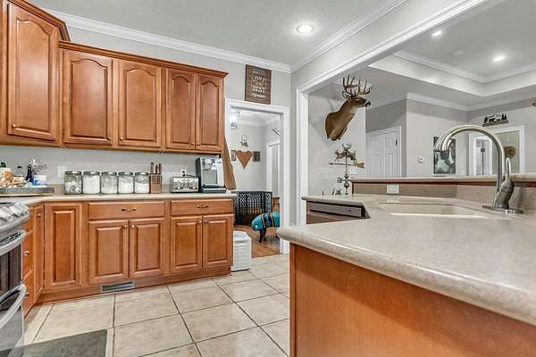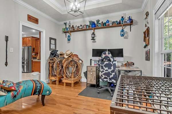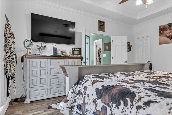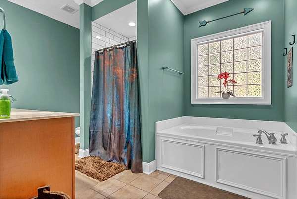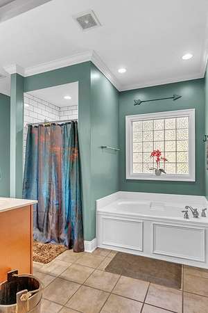 - Crown Moulding, Lighting Recessed, Newly Painted, Open Floor Plan, Pantry, Separate Shower Primary, Specialty Ceilings, Split Floor Plan, Walk-In Closets