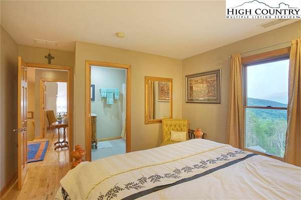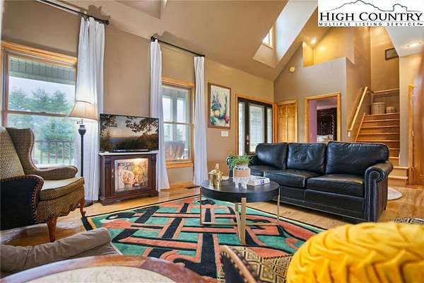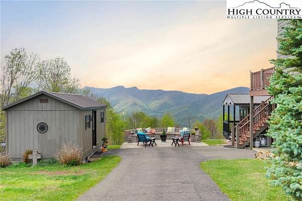 Sunset views, solar power, and space for everyone--this mountain-style cottage on 4+ acres has the kind of charm and practicality that's hard to come by. With 5 bedrooms, 5 full baths, and 2,500 sq ft of living space, this property offers a flexible layout for full-time living or weekend getaways with room to spare. Add the existing fruit trees and beautifully landscaped gardens and what more could you desire?Located just minutes from downtown West Jefferson, Mountain Aire Golf Course, and Old Barn Winery, you'll feel tucked away but never too far from good food, good wine, and a good round of golf. The main-level primary suite keeps things convenient, while the cathedral ceiling, gas fireplace, and board and batten accents give the living area cozy character. The kitchen includes a pantry and opens to an open deck with a layered long-range view of Three Top Mountain--your daily dose of sunset magic. You'll love watching a storm roll in from far away. Upstairs, you'll find two bedrooms with en suite baths, and downstairs, a walk-out basement with a family living area, two additional bedrooms (one currently used for storage), and easy access to the majestic outdoors. If 5 bedrooms aren't sufficient, the property also has a full RV set up for guests arriving with a camper in tow. The outdoor setup is ready for gathering sand quiet moments alike: a grill and patio area just off the basement doors, a fire pit with big sky views, and a second seating area facing the mountains. Three outbuildings, including one currently serving as a home office, one as a workshop and the third for storage, offer so much potential! Two of the three are electrified and can be air conditioned with window units should you desire. And here's the cherry on top:a full array of solar panels on the western slope helps reduce your energy bills year-round while leaning into clean, renewable living.