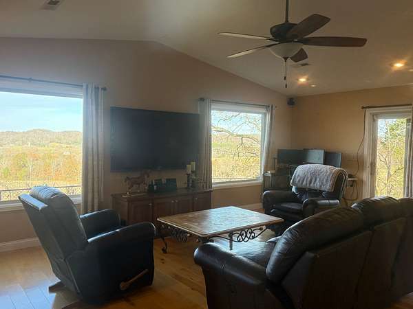 . YOU WILL BE IMPRESSED.This property is a gem nestled on 2+ acres..It's a haven of privacy away from all the hustle and bustle, This home has stunning panoramic views from the back, Overlooking the Cumberland river valley it's breath taking providing a back drop.from The moment you enter the home You see the renovated spacious kitchen and dining room with Stunning custom hickory cabinets, Kitchen with island and coffee bar. Beautiful hardwood floors and modern appliances A large family room with huge windows for taking in the views.3+ bedrooms and three baths. A large den/rec room perfect for entertaining all your family and friends. This home also has an office a large finished basement area and attached garage. A long private paved drive offer a sense of privacy and tranquility perfectly complimenting the serenity of the property. Also has a 4 bay lean to for storing all your outdoor equipment, Call today to view this property. This is POSSESSION IMMEDIATELY.