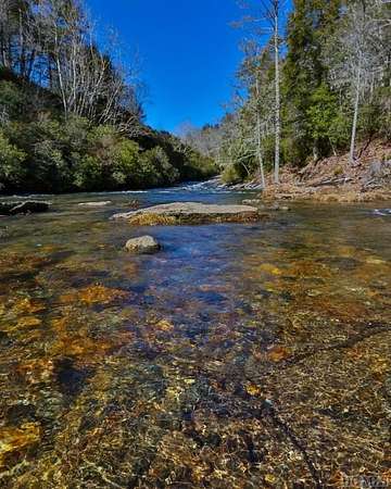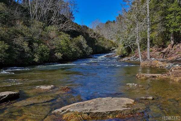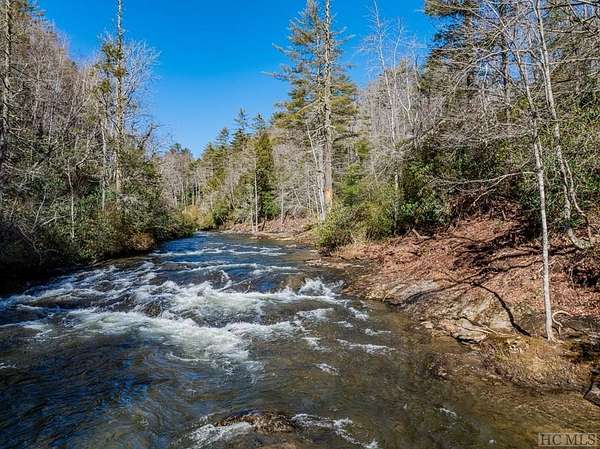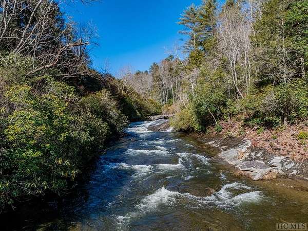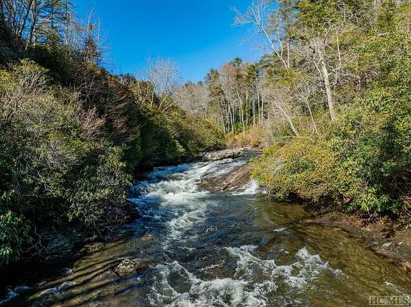 The Cherokee word for tumbling waters is Amicalola, which translates to "Paradise Found." This exceptionally special lot in Burlingame Country Club is situated directly on the Horsepasture River, nestled on a tranquil street. The wild and scenic Horsepasture River is renowned for offering some of the best fly fishing in all of North Carolina. Imagine building your dream home surrounded by lush privacy, where you can enjoy the soothing sounds of bold, flowing water and views of a waterfall and rapids right in your backyard. With a remarkable river frontage of approximately 400 feet, this combined lot provides an unparalleled opportunity for nature lovers. Here, you'll feel as though you're in the midst of a hidden retreat while being less than a 5-minute drive from the country club, should you choose to join. The location is highly convenient-just one hour from Asheville Airport, 30 minutes from the charming college town of Brevard, and another 30 minutes to Main Street Highlands, which boasts an array of boutique shops and dining options. Don't miss out on this incredible opportunity!