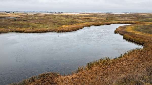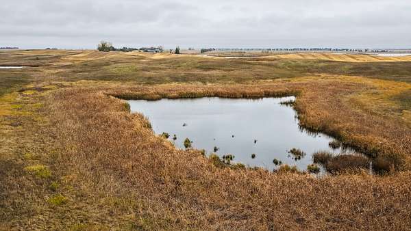 The size and layout of the property is basically an entire section (1 mile by 1 mile), less and except 40 acres (the northwest quarter of the northwest quarter section). This leaves a remaining balance of 600 acres according to county records. The property itself is relatively flat and classified as "wetlands" which comes from a water fed inlet as its source. There is approximately 100 acres within the property that is being actively farmed and has the opportunity to continue to do so. The vegetation consists of native plants and grasses that are typical for this type of property.