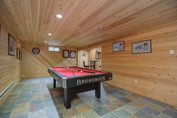 Basement: The basement is finished and includes a recreation room with a Brunswick pool table. There is also a sauna with a shower and a wine cellar. The electrical closet and hot water heater are located in the basement.
